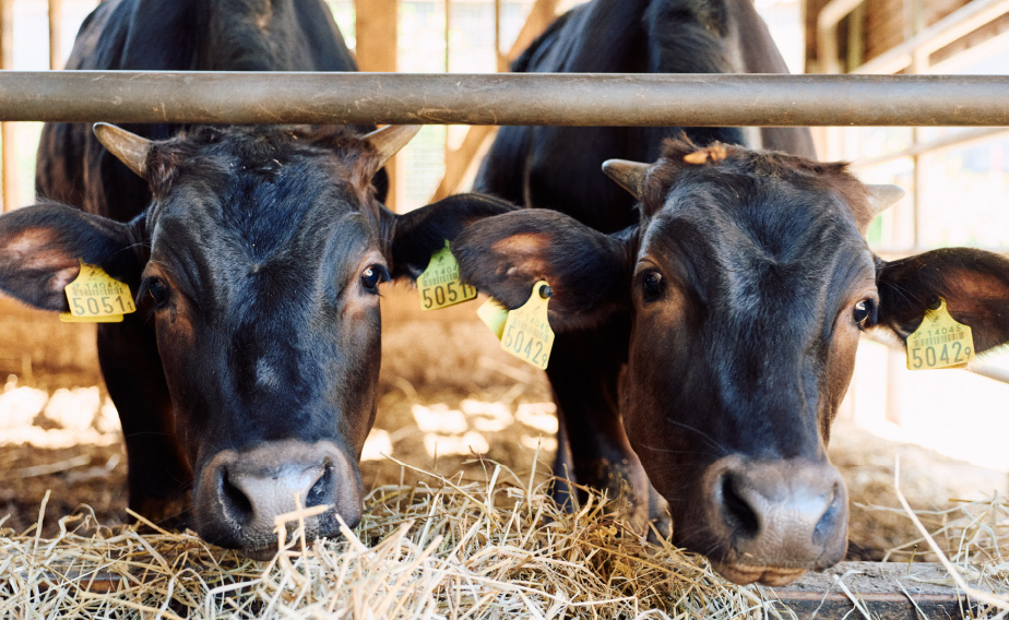 「A5ランク」の品質に育てるためには、胃の中の微生物の状態が整い、肥育農家の手に移った後も、充分なエサの摂取によりしっかりと栄養が吸収できる体がつくられるよう、子牛のときからの徹底した飼養管理が重要となります。
