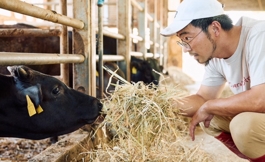 また、私の農場では、牧草や稲わらなどの粗飼料にもこだわり、自分たちで育てたものを使用しています。
